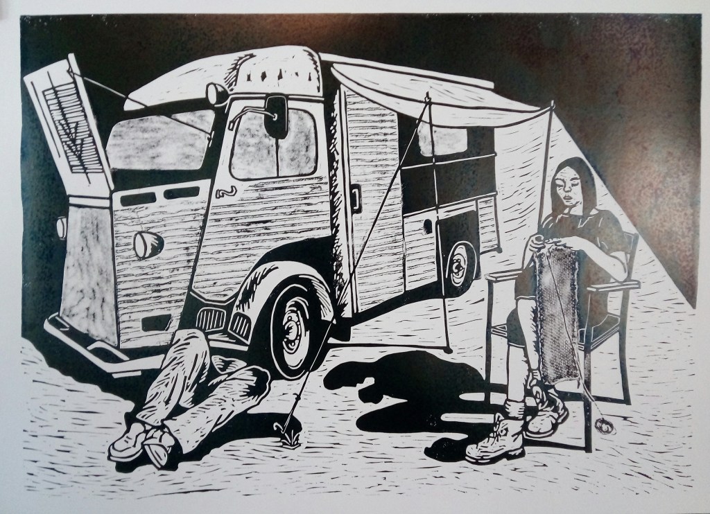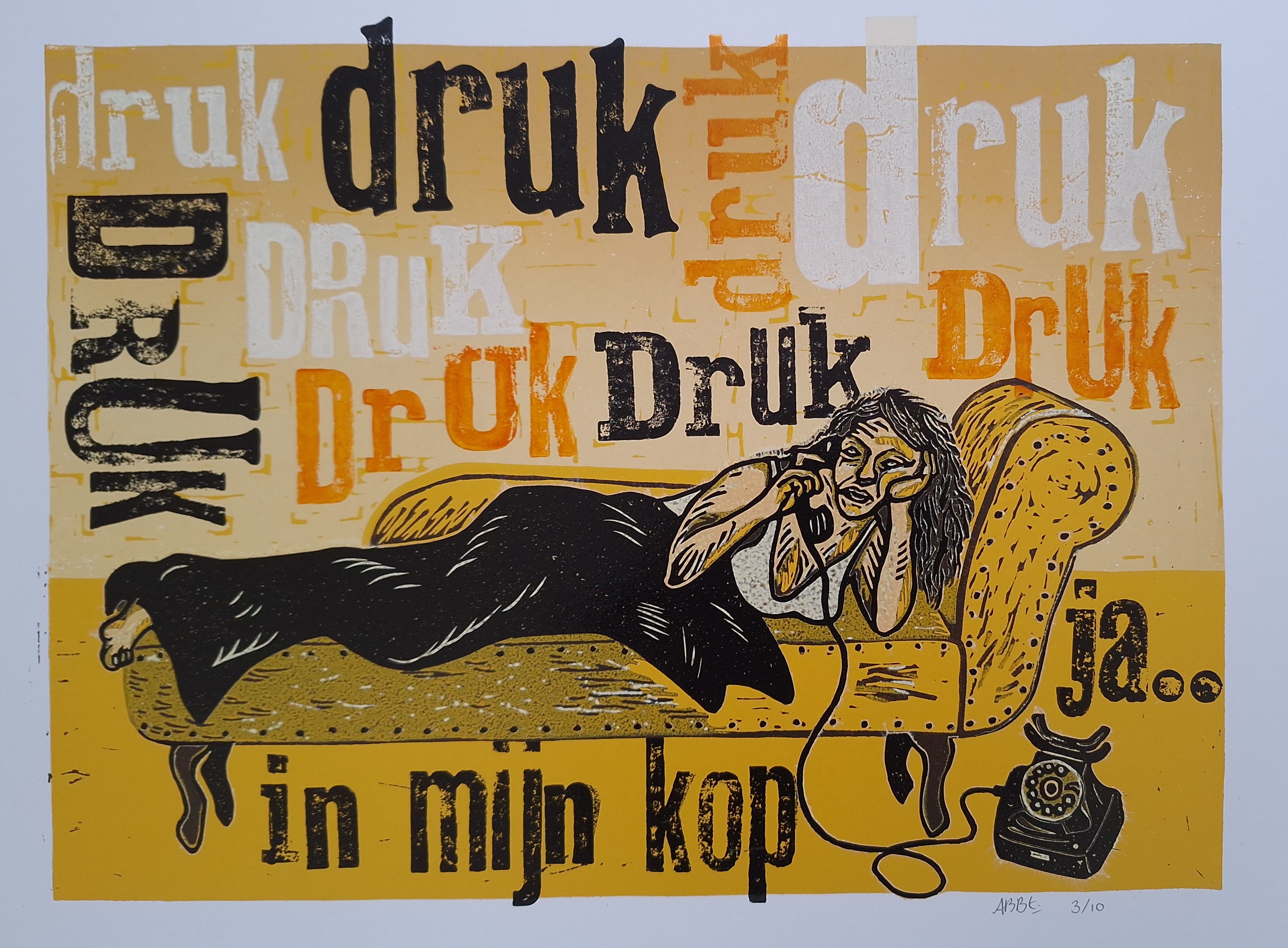 Ik ben afgestudeerd aan de kunstacademie C. Huygens te Kampen, met vooral zwart-witte linosneden.