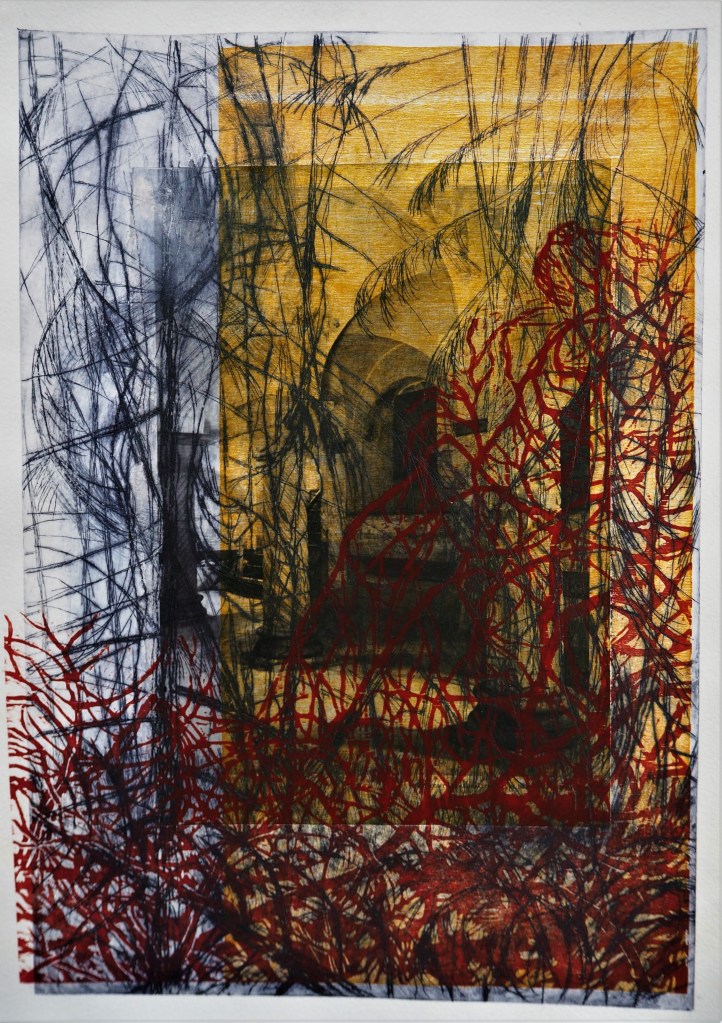 Ik heb me laten inspireren door het werk van grote schilders als Ruisdael, Seghers, Friedrich uit de 17e en 19e eeuw, door expressionisten uit het begin van de 20e eeuw. Soms zijn ze letterlijk het vertrekpunt voor mijn tekeningen. Het materiaal waar mee ik werk, verschillende papiersoorten, klei en Oost-Indische inkt, vaak gecombineerd met krijt bepalen voor een groot deel het beeld.