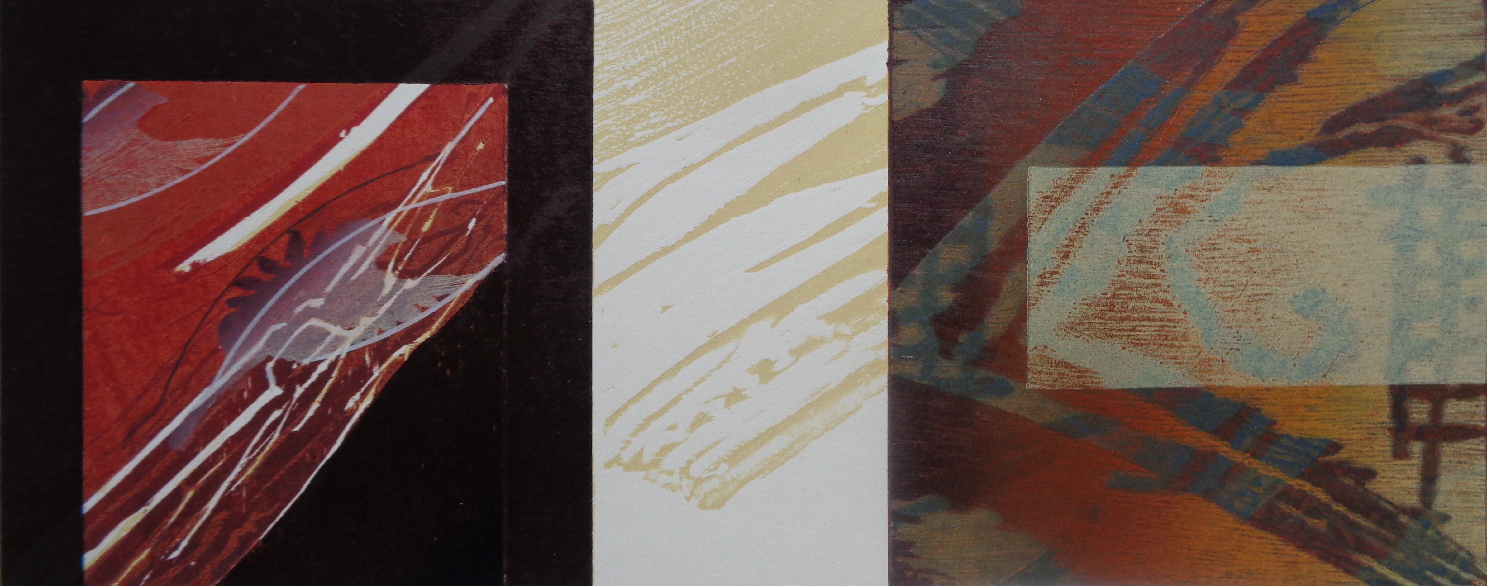 Hoe duidelijk de ideeën in het begin ook zijn, tijdens het drukken gaan ze altijd een eigen leven leiden. De structuren, vormen en kleuren dwingen mij bij elke drukgang te bepalen wat er toegevoegd of weggelaten moet worden.