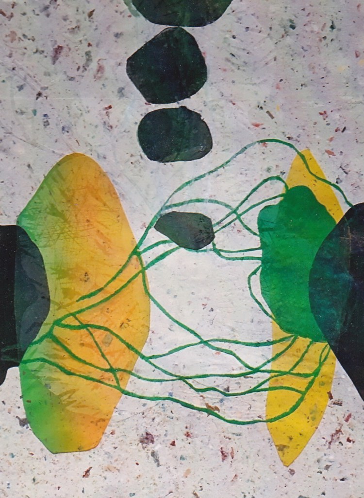 De voorstelling bevindt zich tussen abstractie en figuratie.